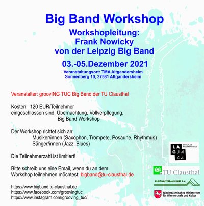 Wenn Du an dem Workshop teilnehmen möchtest, dann sende uns bitte das ausgefüllte Anmeldeformular an bigband@tu-clausthal.de.